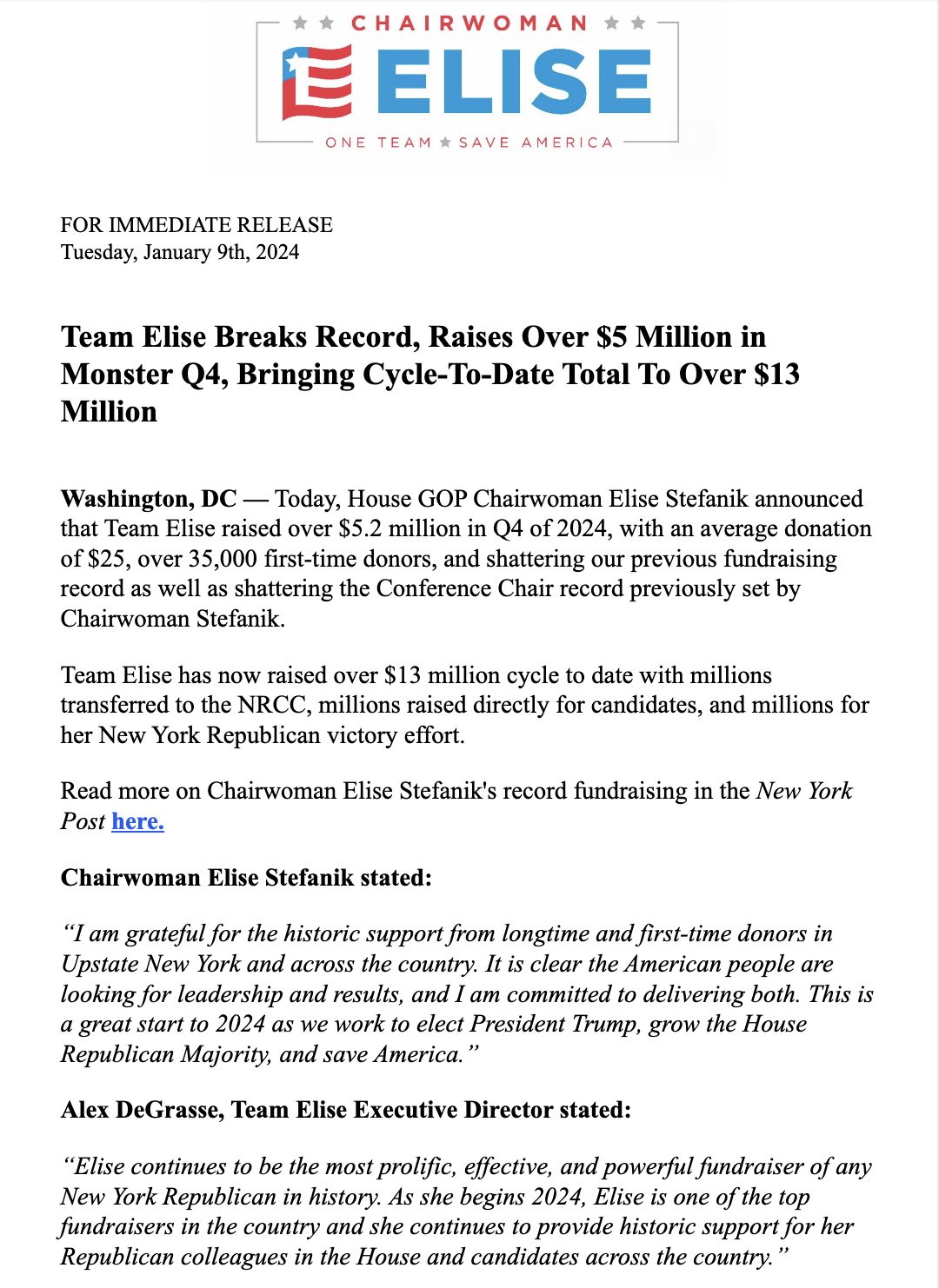 Juliegrace Brufke on X: “Stefanik announces she raised $5.2